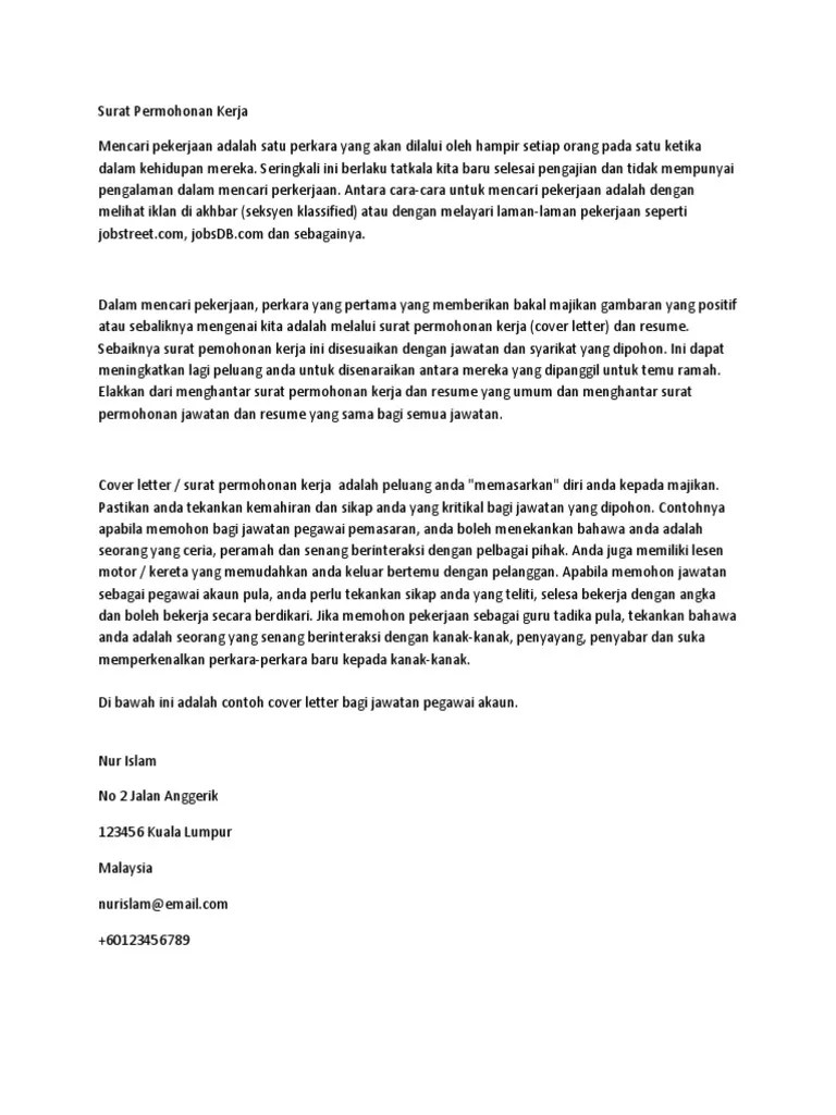 Contoh Surat Cover Letter Permohonan Kerja Kerani - Contoh Cover Letter Bahasa English 2022 Spa